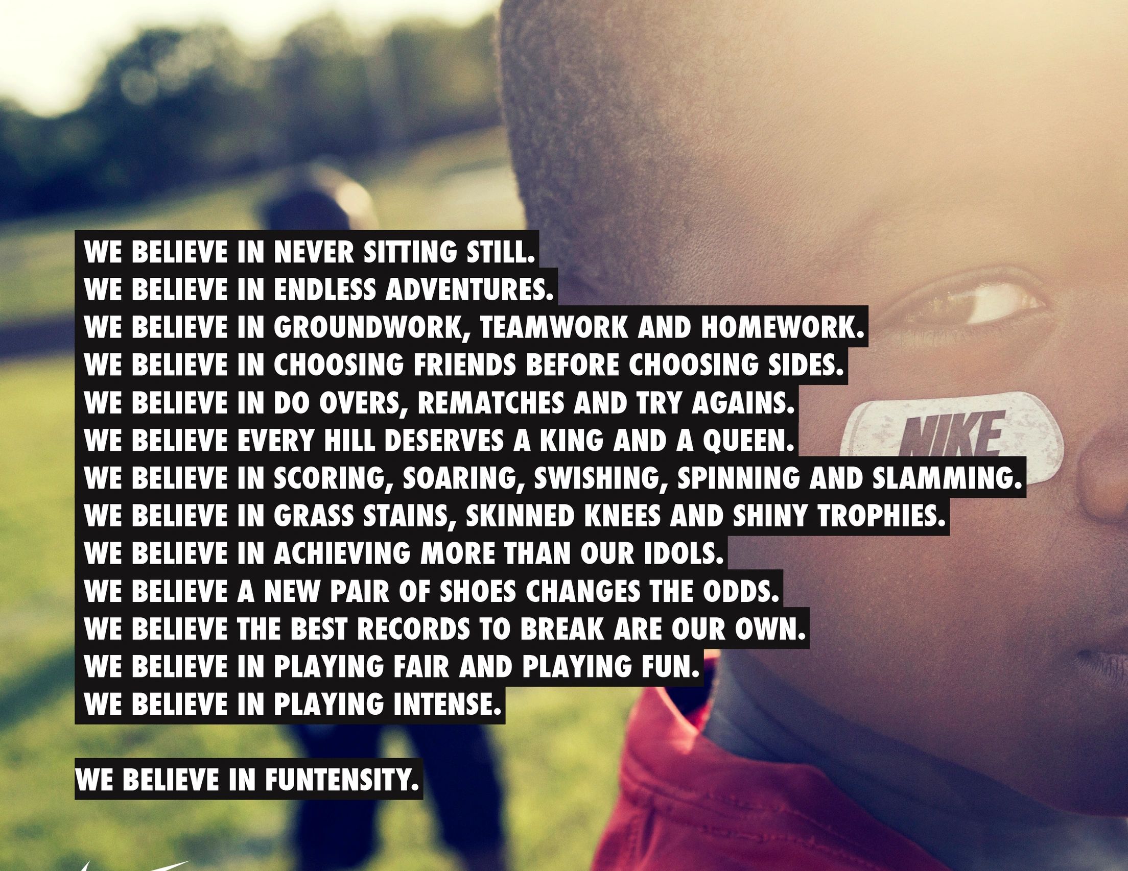A few writers were invited to pitch for a freelance role at Nike. The challenge? Write a mantra for young athletes around their theme word FUNTENSITY. Spoiler alert, I landed the job.